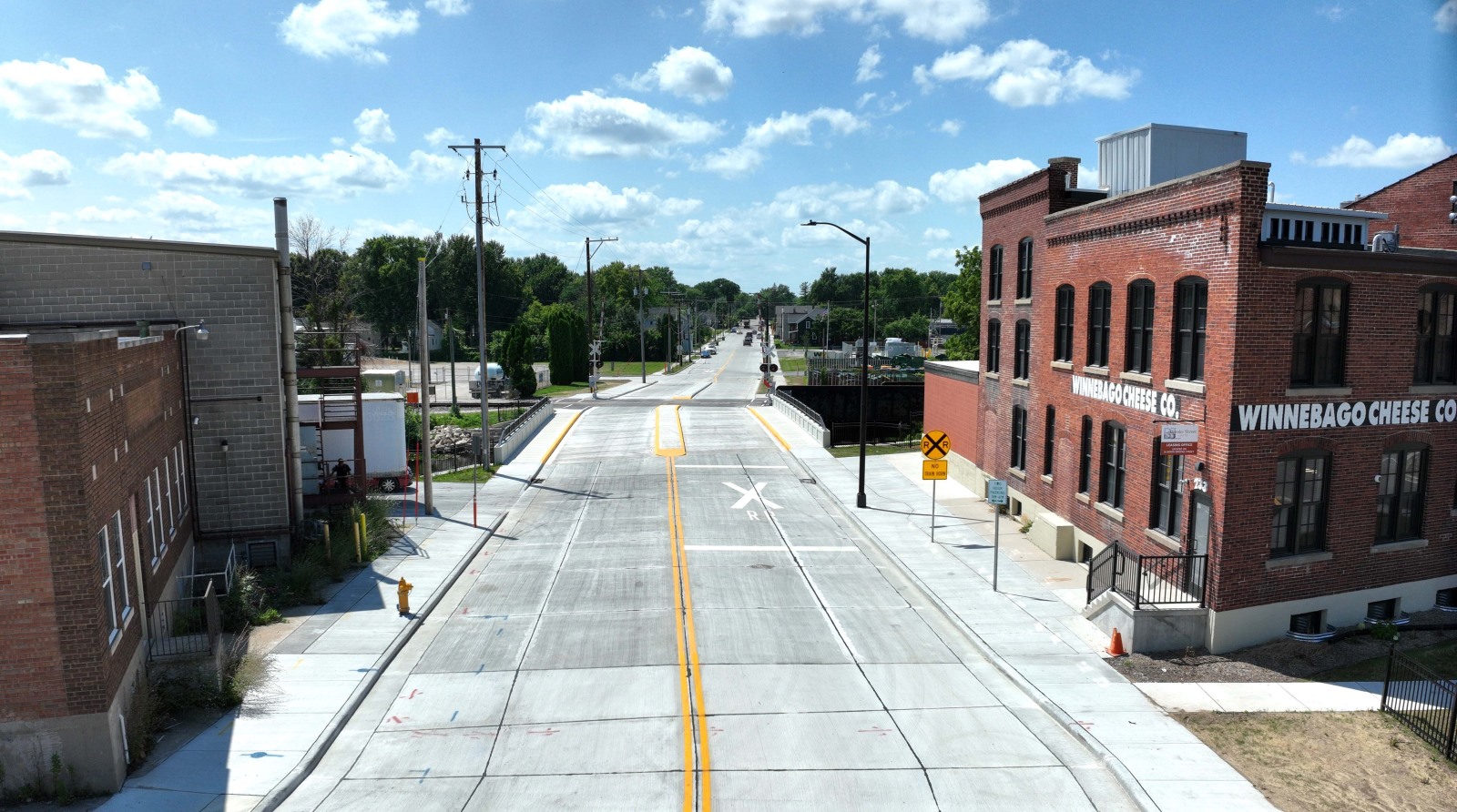 Railroad accommodations aside, this project was challenging in other ways. The design team needed to coordinate project schedules, staging, and utility relocations with a city-led street reconstruction project underway along on each side of the project site. The designers also needed to be exceptionally mindful about construction operations, utilizing vibration-monitoring equipment to measure frequency so that construction operations would not adversely impact the masonry bricks of the adjacent 1914 Winnebago Cheese Factory — a building of historical significance designed by local architect Frank Stepnoski that was added to both the state and federal Register of Historic Places in 2022.