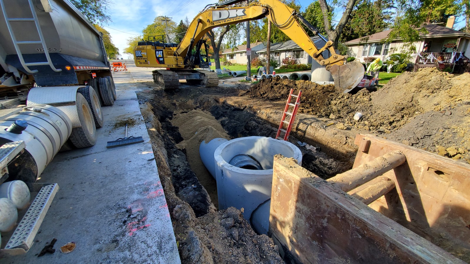 Among the most important changes was the installation of a new 78-inch storm sewer, connected downstream to an existing 84-inch outfall. This system was designed to carry large volumes of stormwater safely to Lake Michigan, a necessary improvement for a corridor that had experienced recurring flood events.