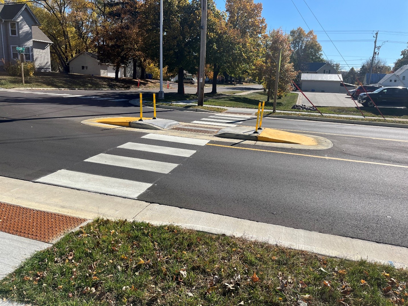 - adding five pedestrian refuge medians in area with high volumes and students en route to school